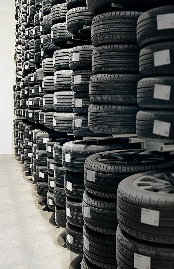 Själva däckbytet och förvaringen sköts av vår gemensamma verkstad